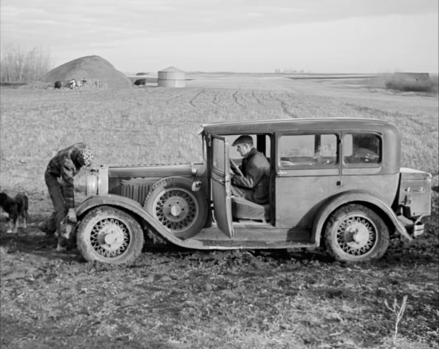 I thought this picture might make us think about hand cranking antique cars. Hand cranking is pretty much a Model T thing for the most part. It’s part of Model T lore. But this picture reminds me and probably others that Model T’s weren’t the only cars that sometimes had to be hand cranked. I’m pretty sure the old auto had a starter but sometimes you had to get your car going by hand cranking.
