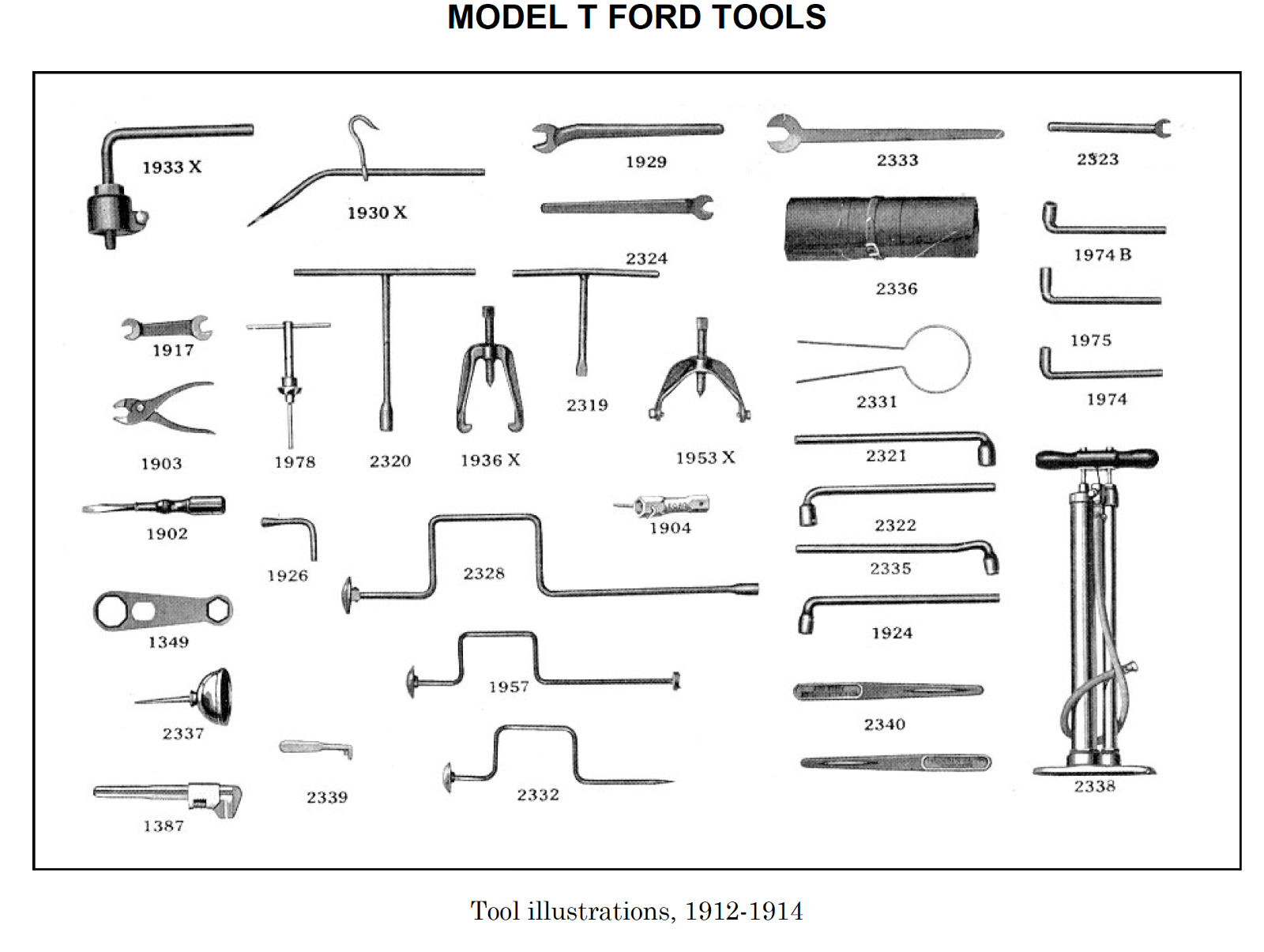 I checked the Cimorelli Model T website. There is a list of the parts books and in the 1912 book there is the picture of the tool roll bag with T tools. That’s also a pretty good source on T information. Maybe the picture from the exploration of history website is a 1012? Anyway the picture is staged.