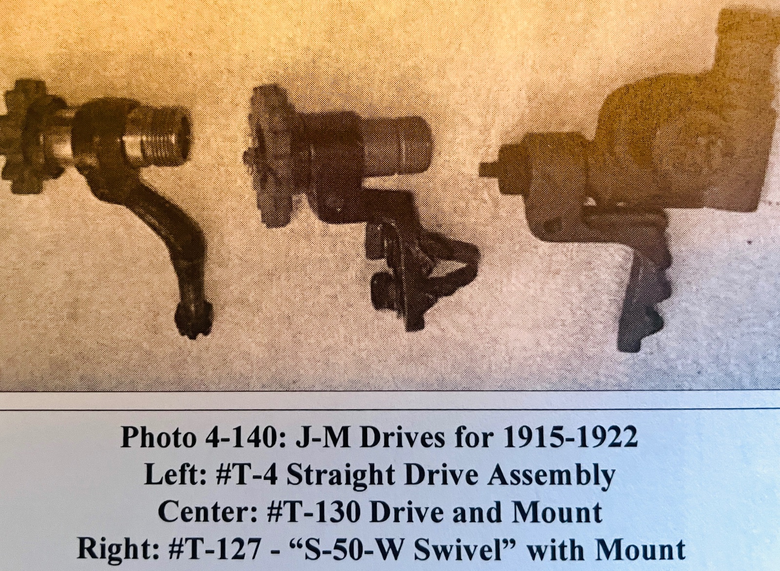 The clamp to the spindle arm w/hole is right, it rotates in the hole, could be the dia. of that S-W road gear is too much, the correct gears for that J-M Ford Special are J-M 35T 8P, and 12T 8P.
