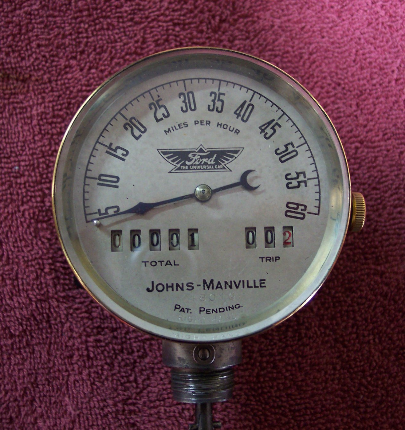 The speedometer is a Johns-Manville, the drive gear is a Stewart 35 tooth and 8 pitch. The person I purchased the speedometer, driven gear and cable from was recommended to me on this forum. I would have to look through my records to get his name. He restores speedometers and sells the parts to get it working. I have had these parts for quite a while and am just getting around to installing them. I do have the "L" iron mentioned earlier. I had the drive gear and the bracket and cable drive so I used them. Any help is aporeciated.