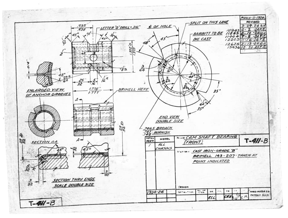 Someone was asking about cam bearing dimensions. This drawing is from The Henry Ford’s website.