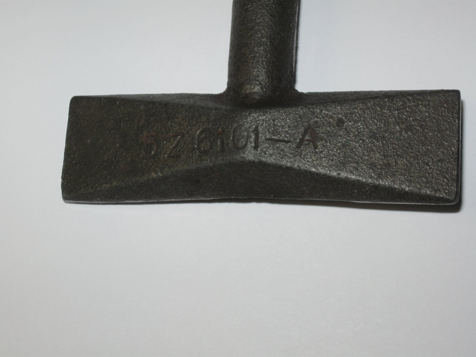 The head is stamped with a 5Z number, 5-Z-6101-A. It is 9.750" long and the head is 3.250" long and 0.875" tall. The ends of the head (faces?) taper down and are 0.125" thick.