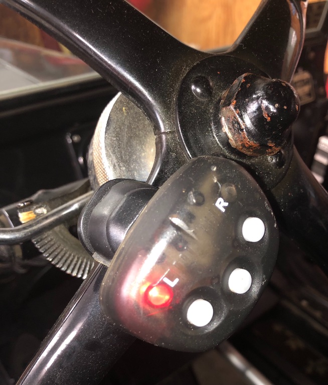 This is the same China version unit mounted on the steering wheel spider. The China version comes with this control for handle bar, but it fits neat on the steering wheel and simple access. Make your own rear bracket to mount. On the '24 made a mount to fit to the spare tire hanging off the center. The signal is centered on the T that way.