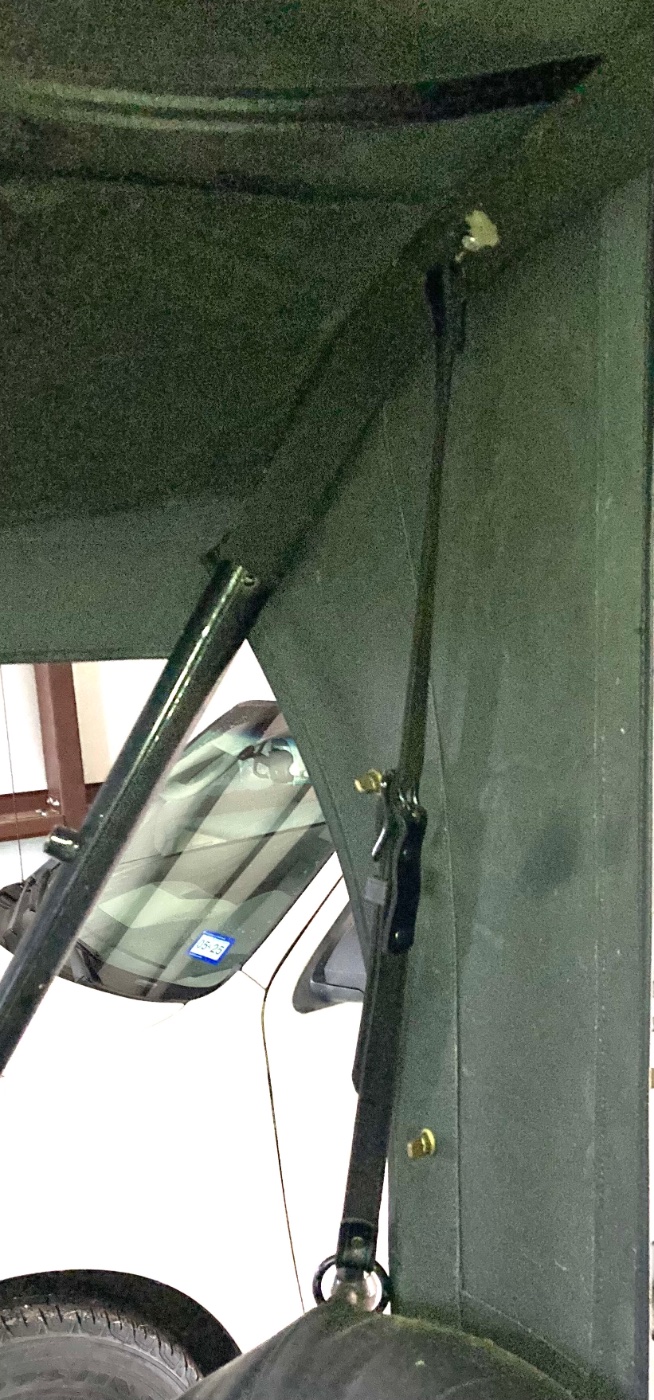 - The first bow is attached to the windshield via adjustable cotton webbing straps with buckles - if you don't have a pair, you can purchase them from Lang's. Cotton webbing, not leather, is correct for 1915 through 1922.