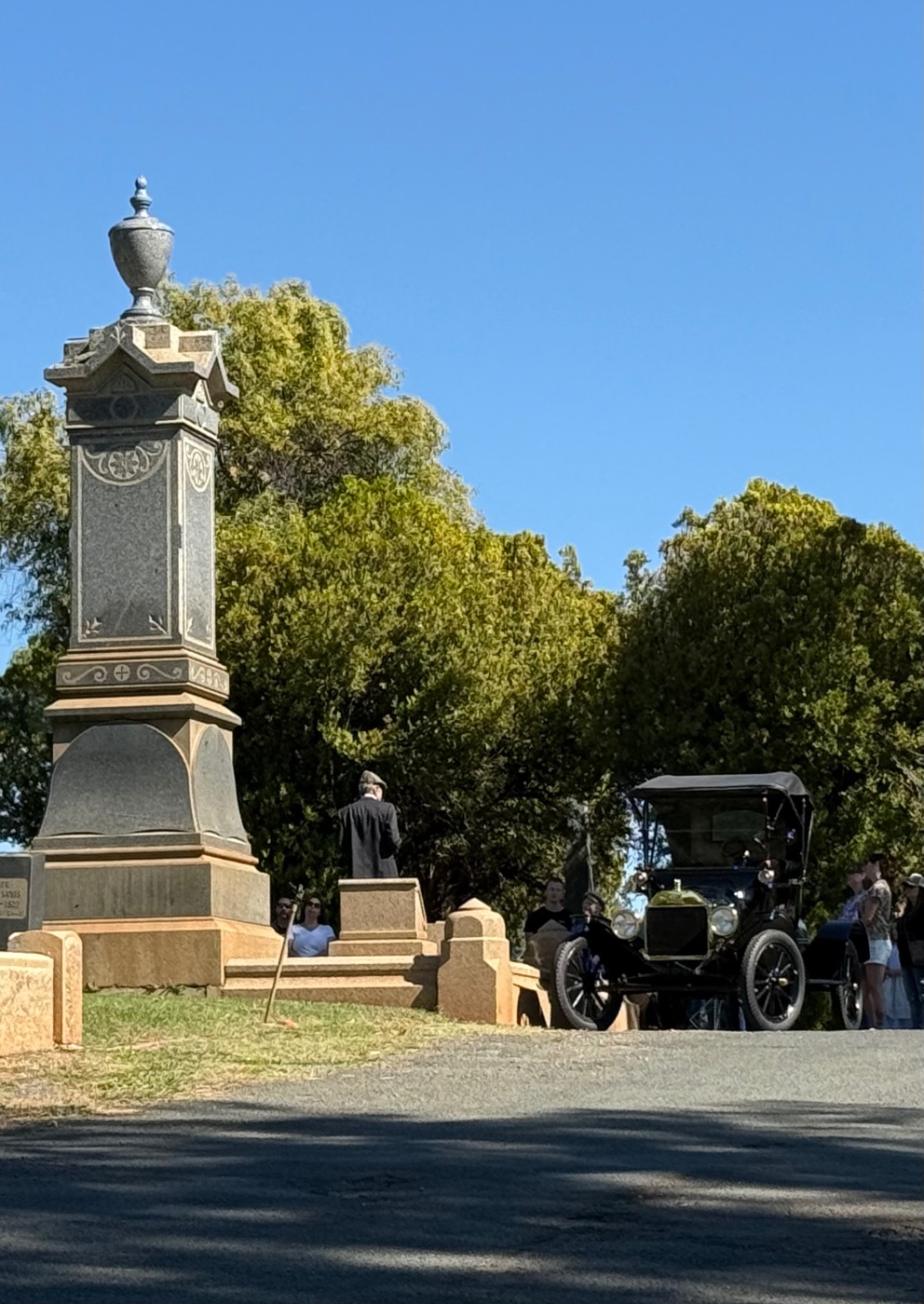 The Historic Cemetery in Auburn, CA hosts cemetery tour every October where docents dressed in period correct attire give a short lesson about some of the notable people in the cemetery. They invited the Mother Lode Model T club along with the Auburn A club to display cars at the event to add to the ambience. It was a well attended event and a chance to learn some interesting history of people ranging from successful businesses entrepreneurs to stage coach robbers.