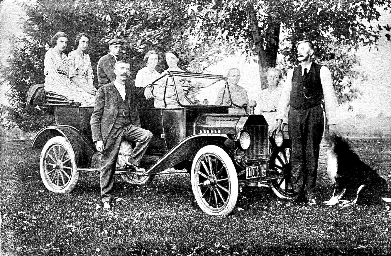 The touring car, with square bottom doors appears to be a 1913. The windshield is 1914 style, hood and rear fenders 1915/'16. Headlamps are electric, and may be later Ford or after-market.