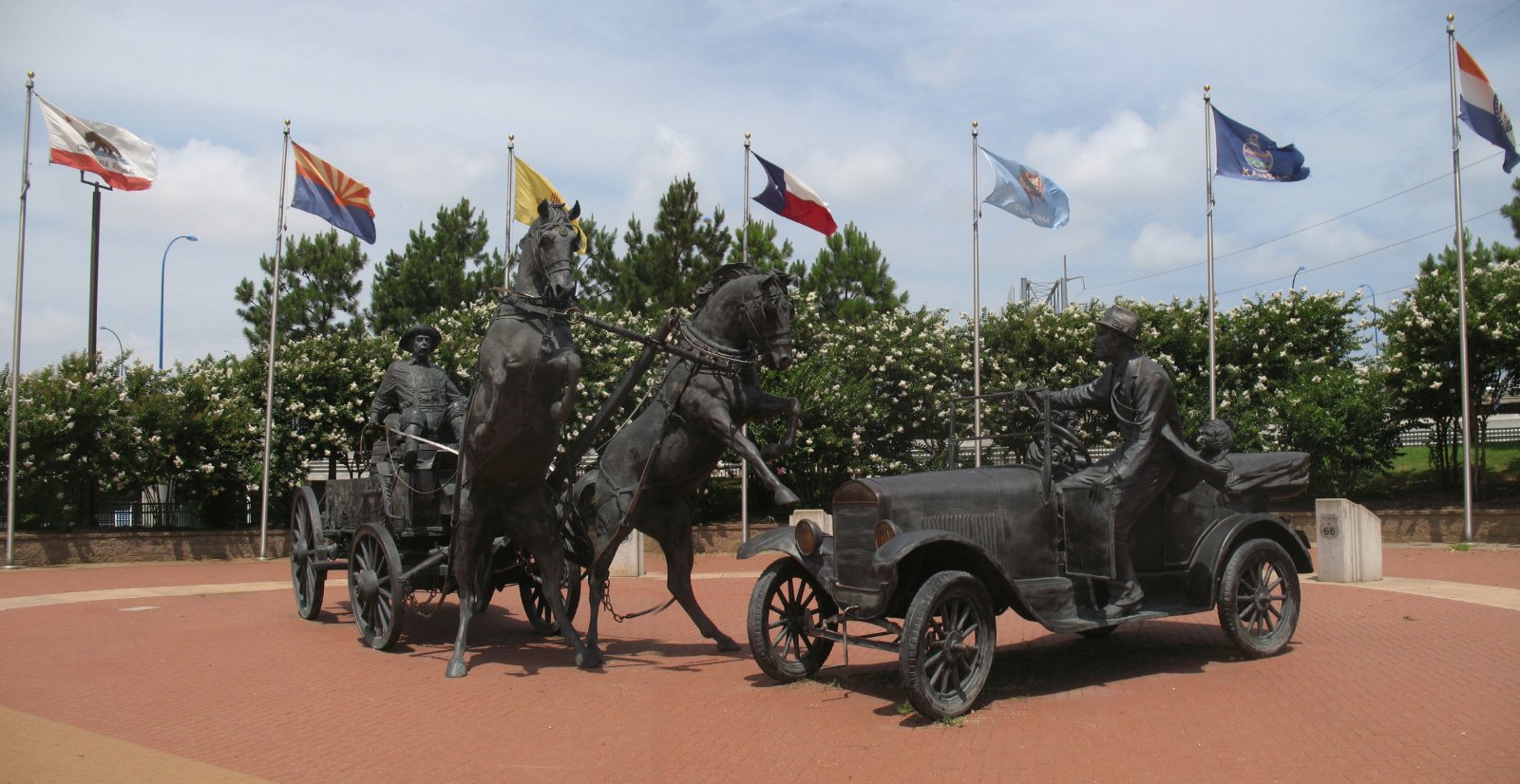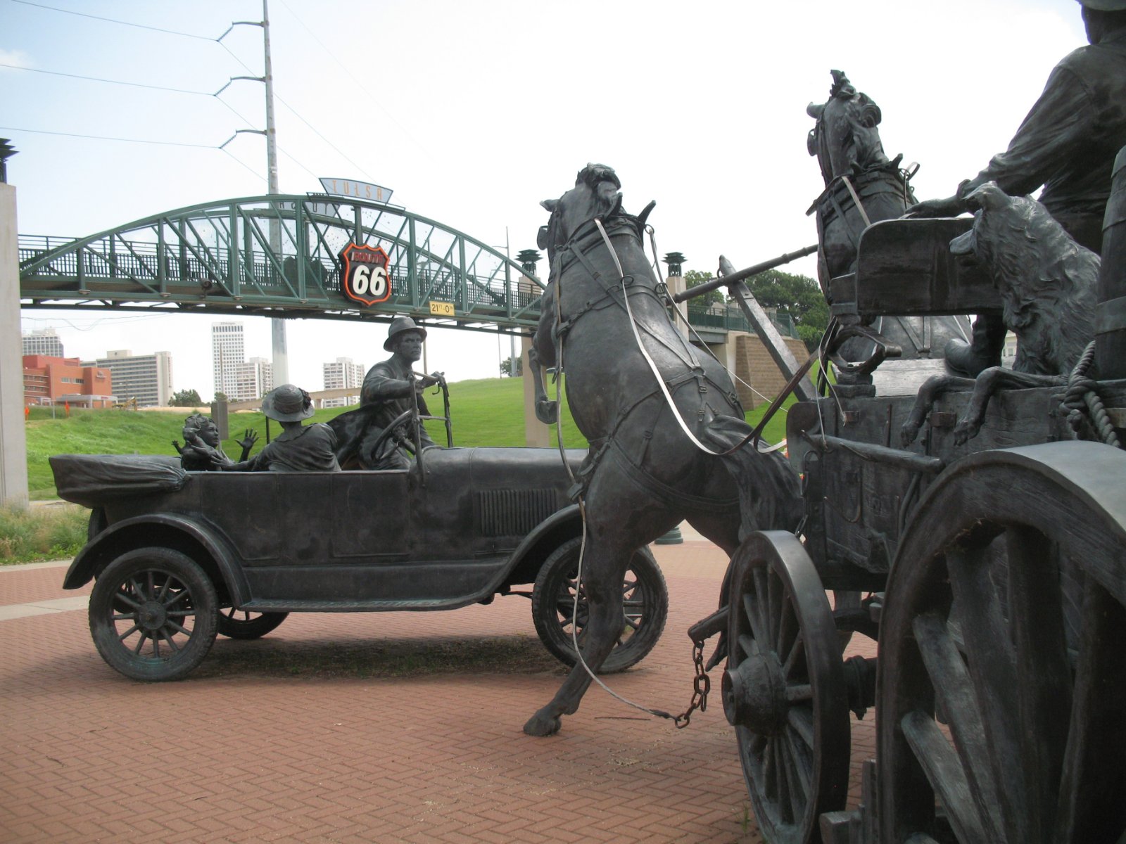 Beautiful sculpture - looking at the year the car represents, you'd have thought horses would have gotten used to having them around by then.