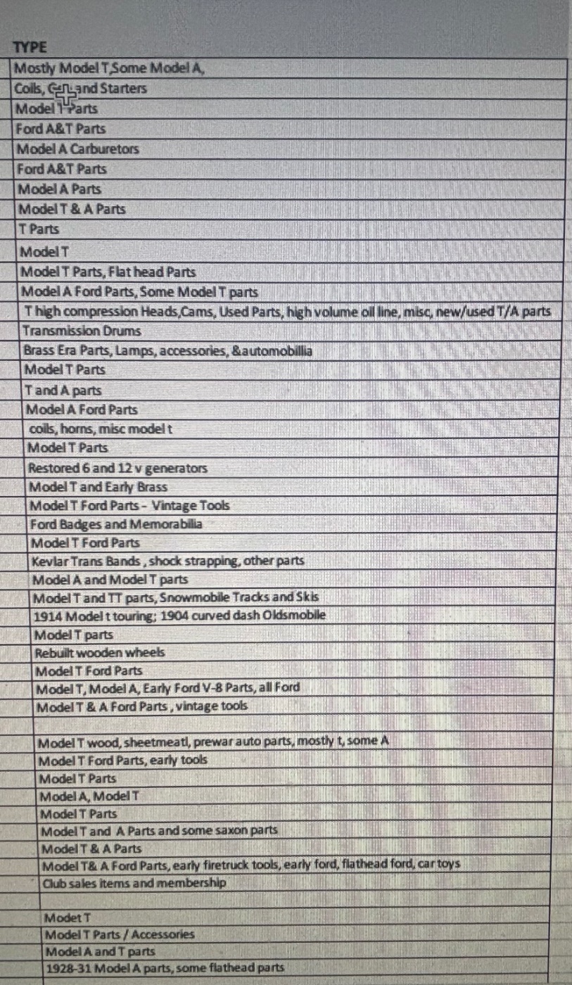 We are currently @ 132 vendor spaces sold and more to come.It is going to be a great swap meet. Lots of good Model T Parts and Cars. Plus much much more. The VFW folks are looking forward to everyone coming to vend and visit. They are going to be ready with Breakfast and Lunch each day. See everyone in less than Two Weeks.