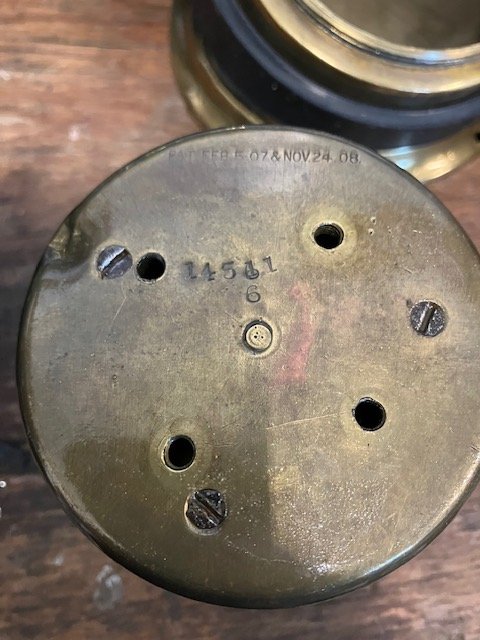 The angle mount is the same as the Stewart speedometer both of my clocks are 1910 your looks like 1908 the rim wind works with an outer cup and the inner cup with the thread