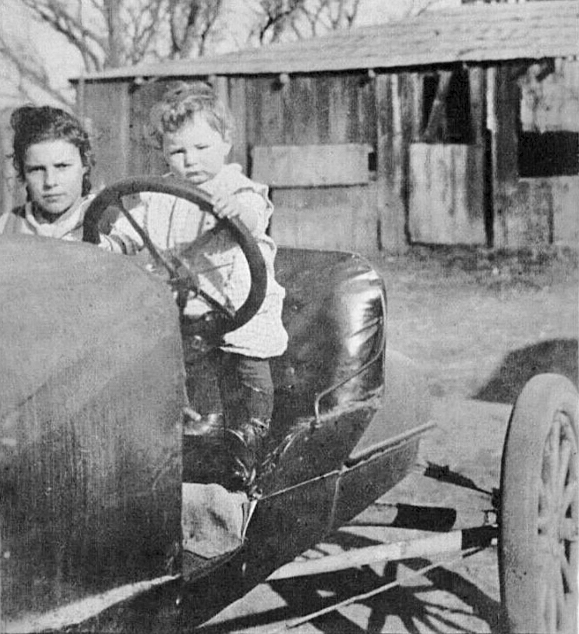 This photo is of my AutoKamp trailer and Stoll tent gifted to me by the young lady holding the black cat. It was taken in their back yard shortly after purchasing them 1924. Les