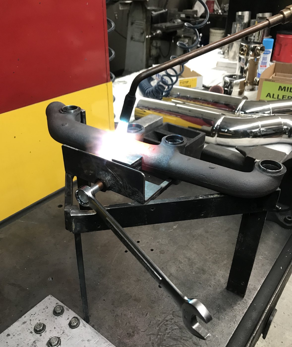 I had two exhaust manifolds that were straightened today by Kenny Edmondson. Here are the pictures.