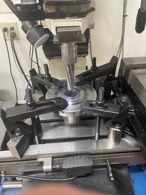 Reaming the taper in the mill.