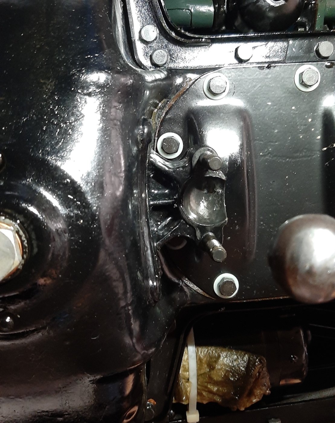 Here are some pics of the ball socket, maybe better trained eyes can see if it is pushed into the crankcase at all.