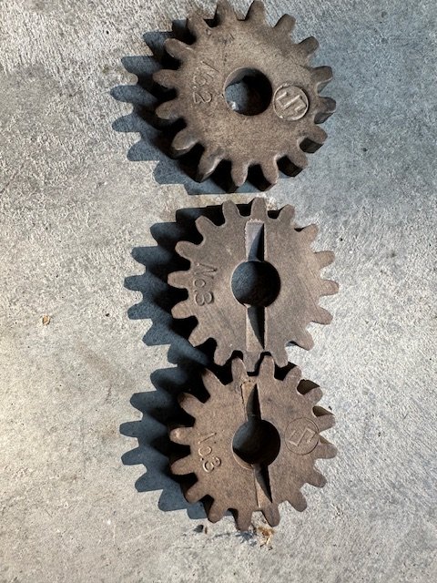 The gears you have are "Circle Ess" gears that have 16 teeth. The #2 gear is a 9 pitch gear and the #3 gear is a 10 pitch gear. Generally, Jones Speedometer Co. and Stewart Speedometer Co. used 9 pitch gears, while Warner used 10 pitch gears. These gears were used with swivel joints or direct drives. These gears were not used on a Model T Ford. I hope this helps. Russ Furstnow