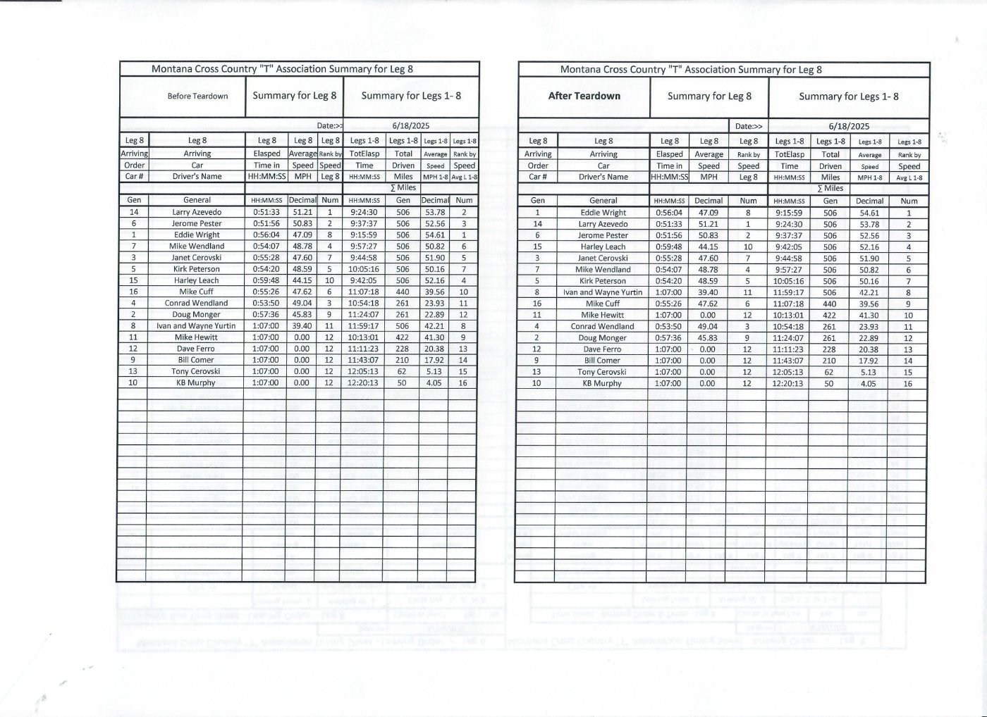 2025 Montana 500 Day 2, Leg 5 Timing Sheet