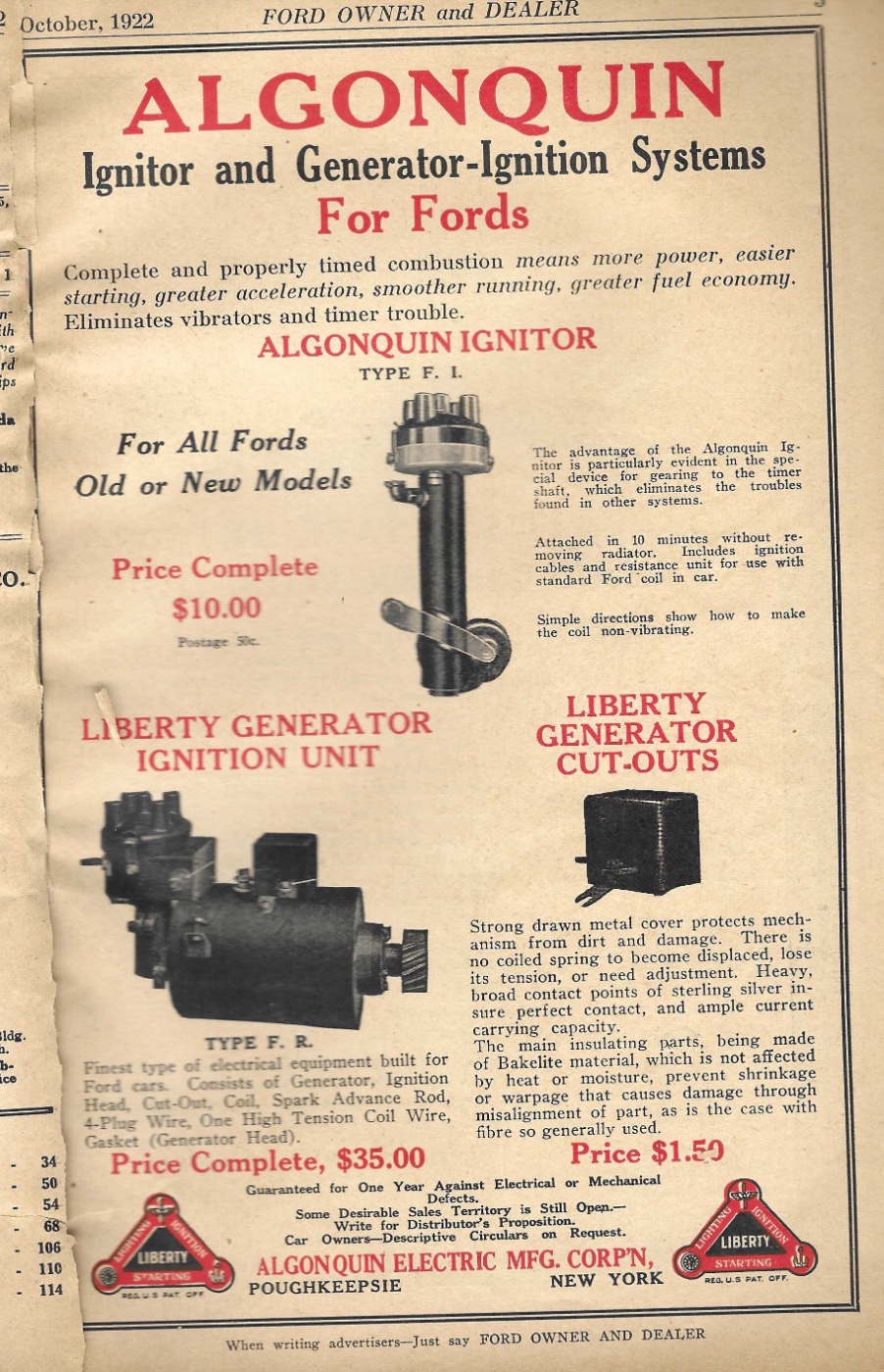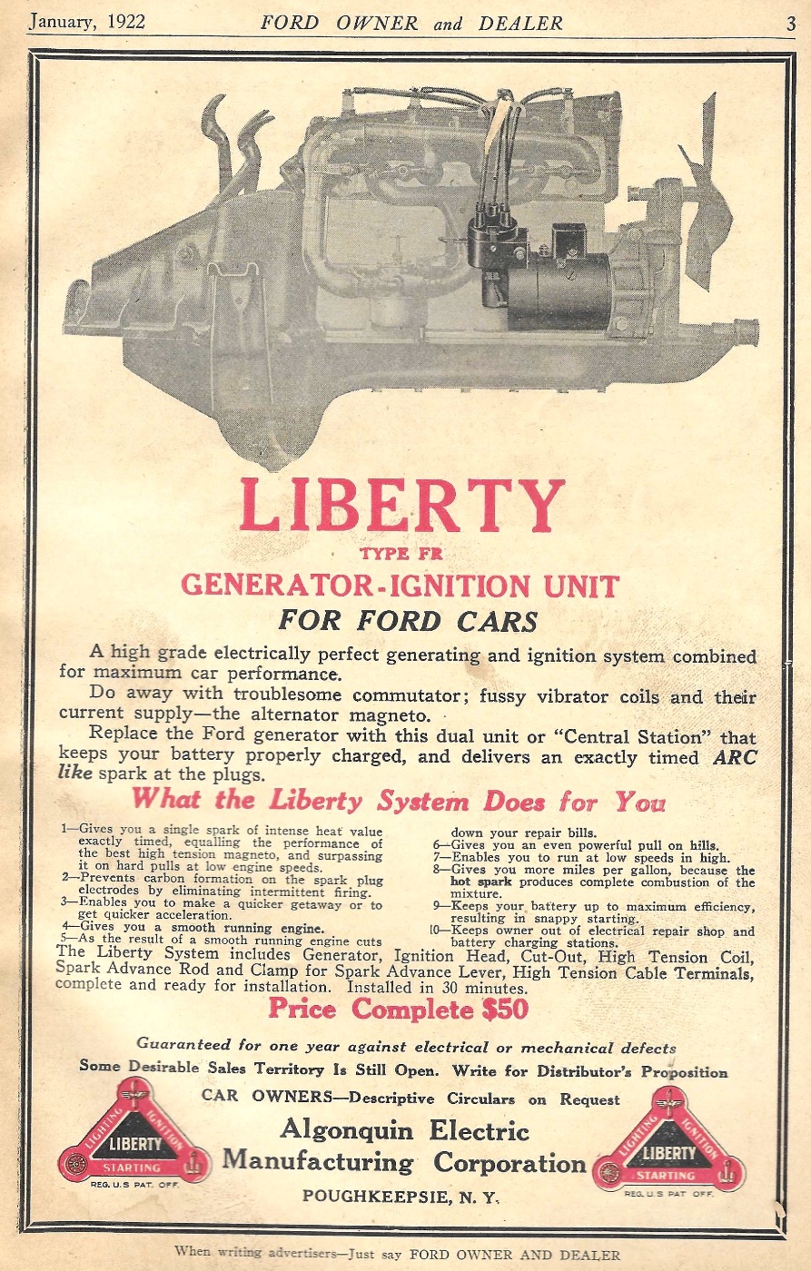 Must have not sold too well, as the high price, last Adv. on the unit was Oct 1922 issue, can't find anymore ads for it in the Ford Owner Dealer. And this last ad has the price lowered to $35!