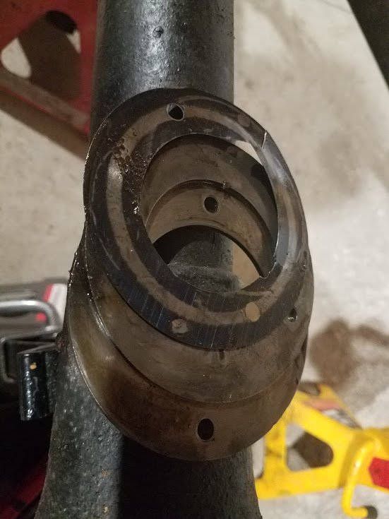 Ring and pinion sets are not available until November. Lone pinion gears not available either. I checked six suppliers. I want to keep with the 3.64 ratio. I thought that I'd nurse this through until then. I also noticed that I don't think that I have any thrust disk pins. All sheared off.