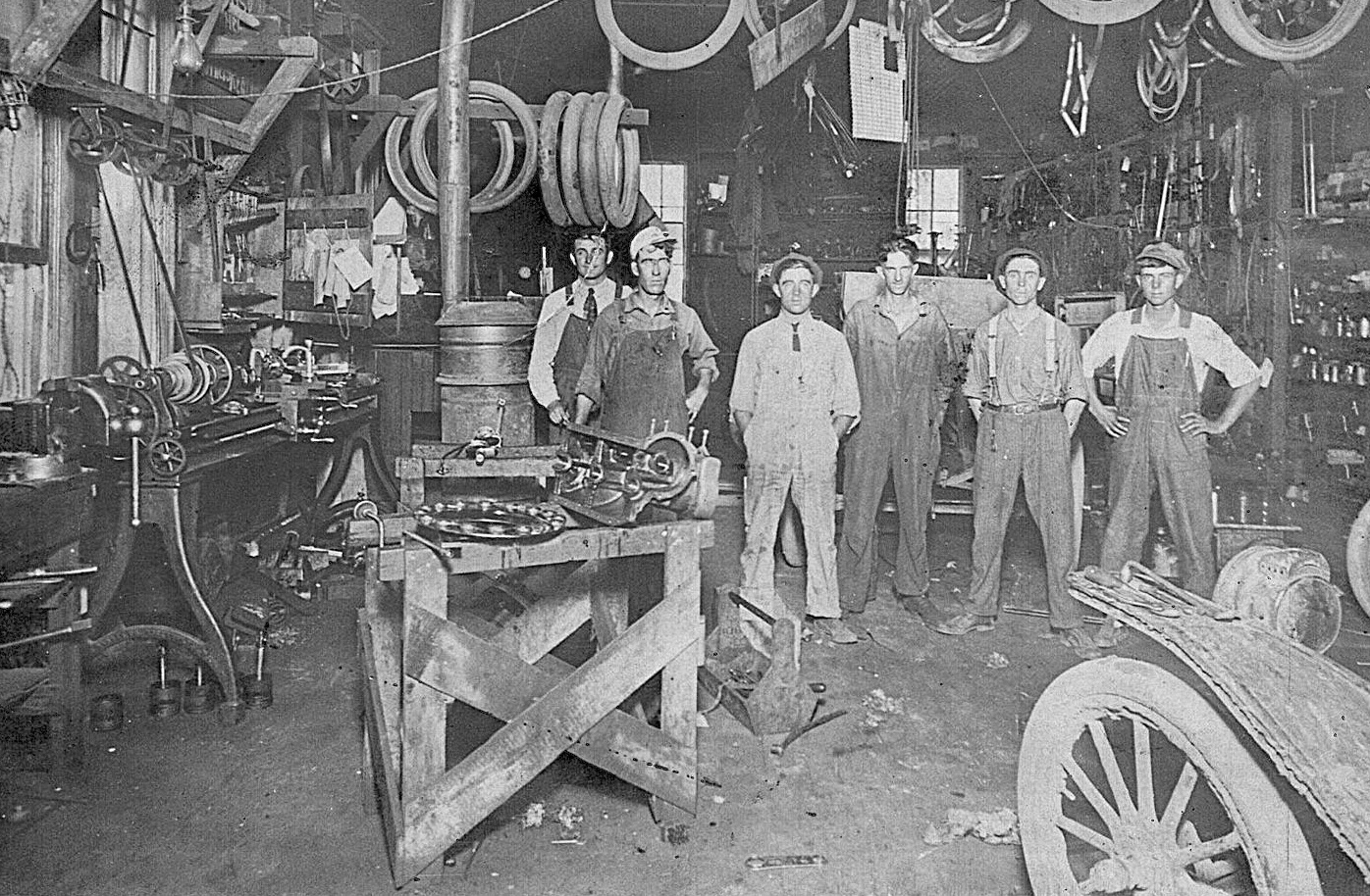 Mr Gates in picture 9 that big block is a T block as early as 1913 or a bit later based on the supports on the 3rd main, the thick oval field coil plus the Jno Brown model 16 headlight on the vehicle to the front right of the mechanics. Can’t imagine how much clean up the shop floor needed weekly. Look closely at the fender with all the mud just on the fender’s edge. The shop had a big South Bend Lathe to boot. Tom great pictures. Best John