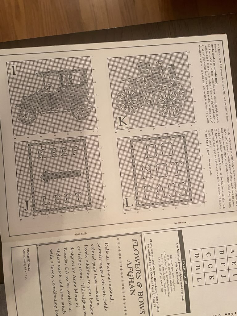 My mother was a knitter in her spare time for most of her life. About 15 years ago she made this old car afghan for my Dad. They are both gone now and I inherited it. Recently i found the patterns in a magazine. If anyone is interested, I can possibly make copies and snail mail, or try and post better pictures. It looks like it was a 2007 Herrschners magazine