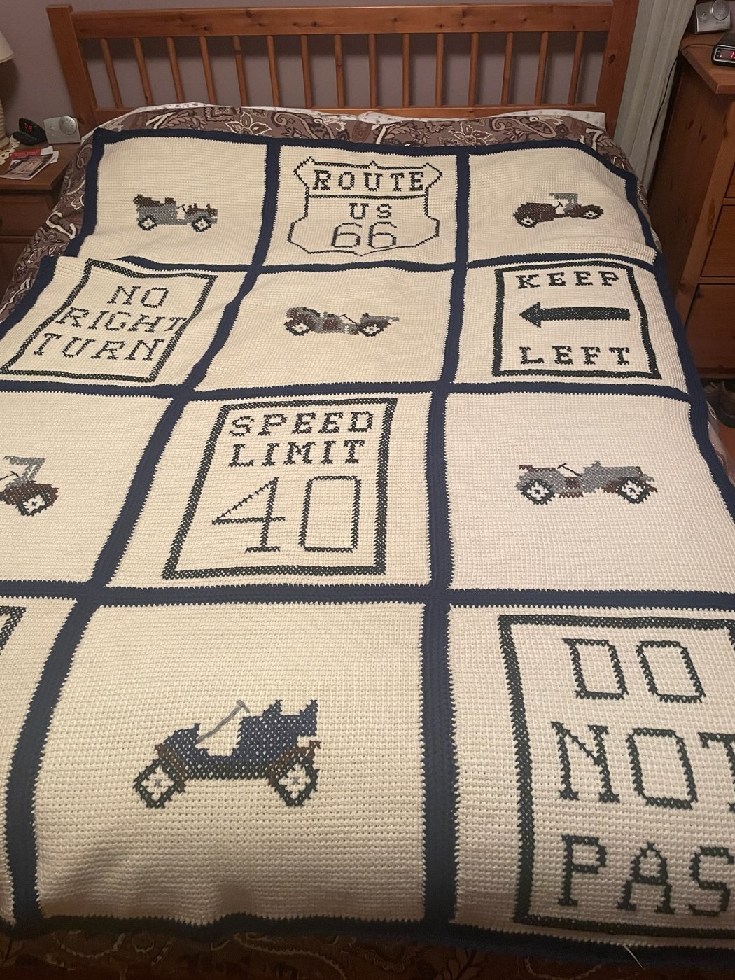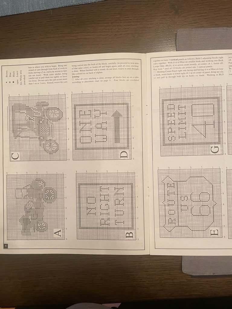 My mother was a knitter in her spare time for most of her life. About 15 years ago she made this old car afghan for my Dad. They are both gone now and I inherited it. Recently i found the patterns in a magazine. If anyone is interested, I can possibly make copies and snail mail, or try and post better pictures. It looks like it was a 2007 Herrschners magazine