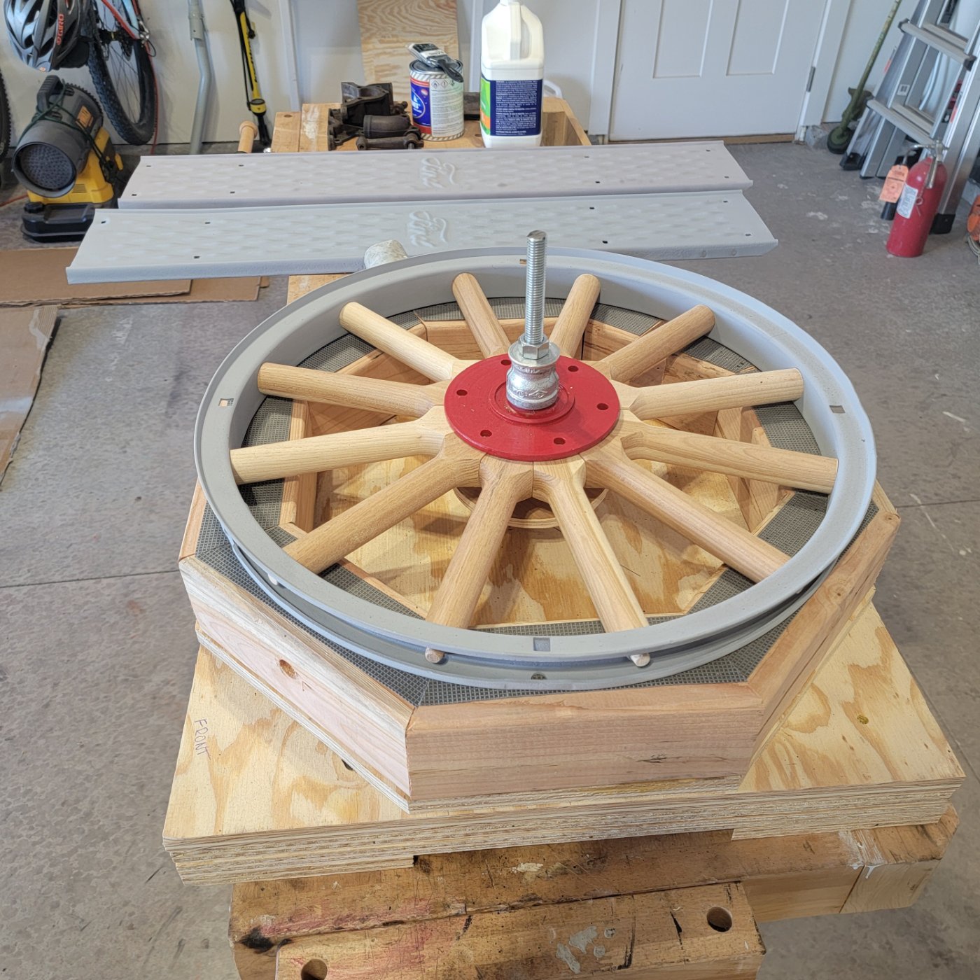 So far this has been the easiest part of this adventure. I tested the press and it worked flawlessly. I've already taken the wheel apart to varnish the spokes and finish painting the rims.