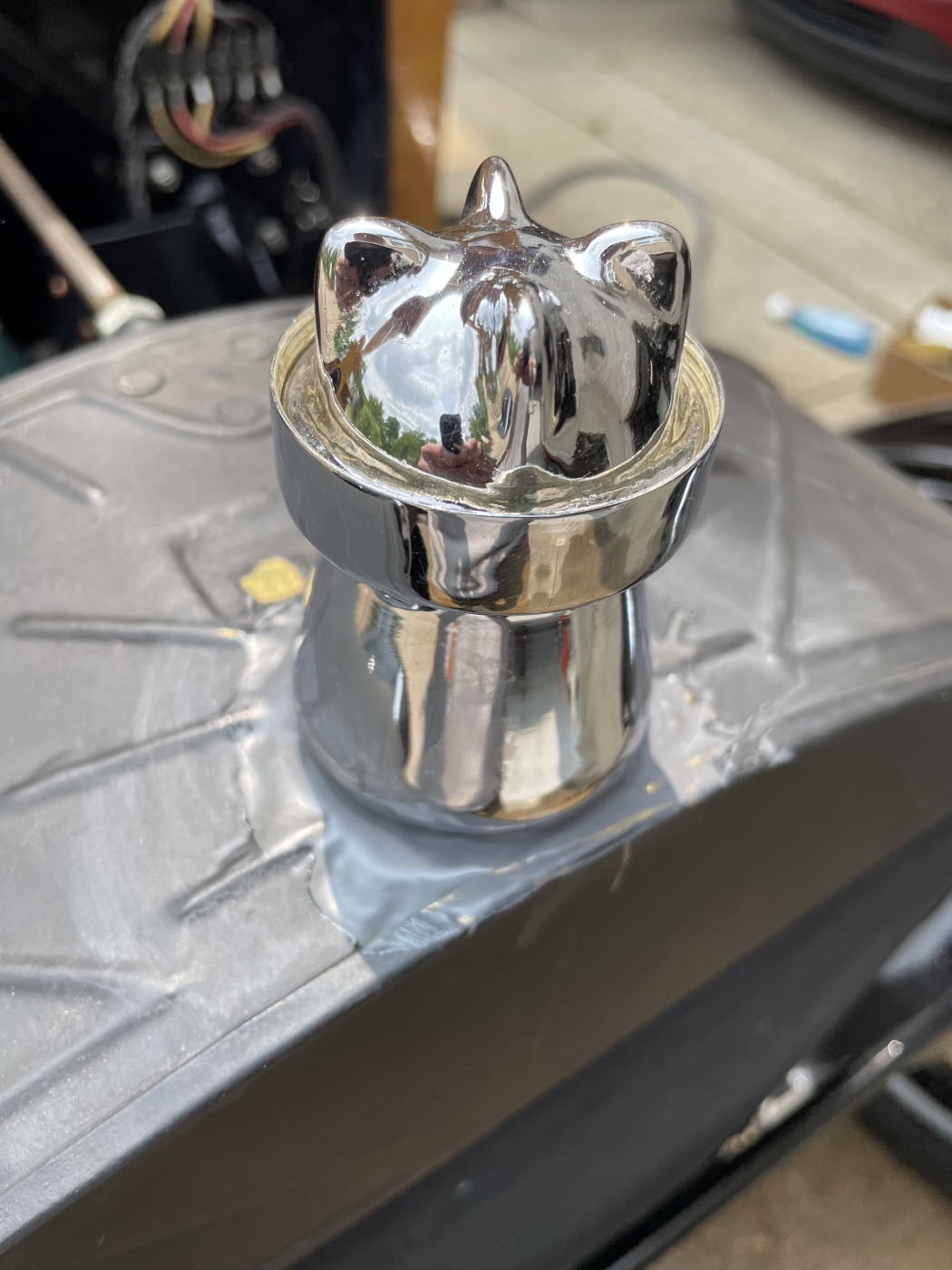 The neck originally cracked about a year ago. I wasn’t able to find anyone locally who felt confident making the repair without risking discoloration to the chrome-plated neck. As a last resort, I tried JB Weld (high heat) — cleaned everything thoroughly and applied a thick coat. It held for a little while with local driving, but after an afternoon giving friends and family rides, it broke down and I had to remove the neck again.