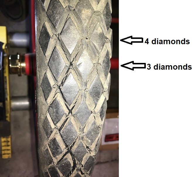 The diamond tread pattern on the Goodyears vs the Blockleys isn't the same.