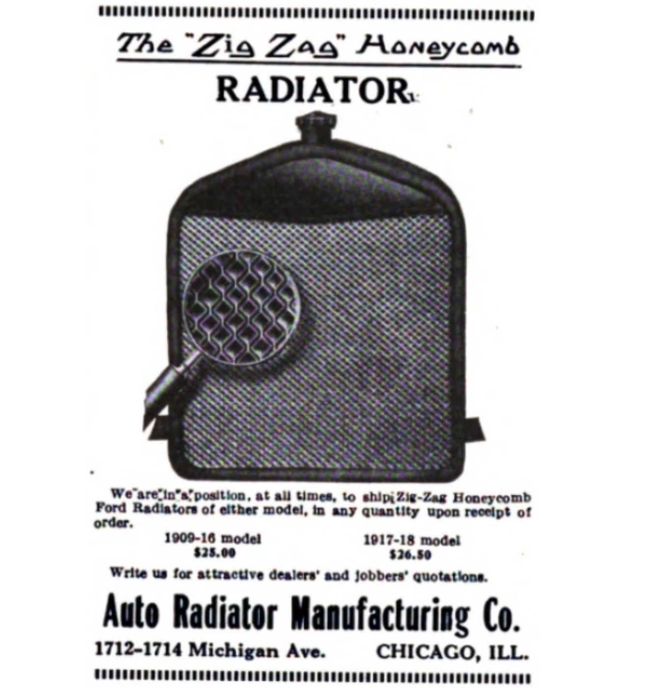 Auto Radiator Manufacturing Co. listed early and late radiators on this ad. I know I’ve seen the early radiator with that logo in one of the accessory catalogs.