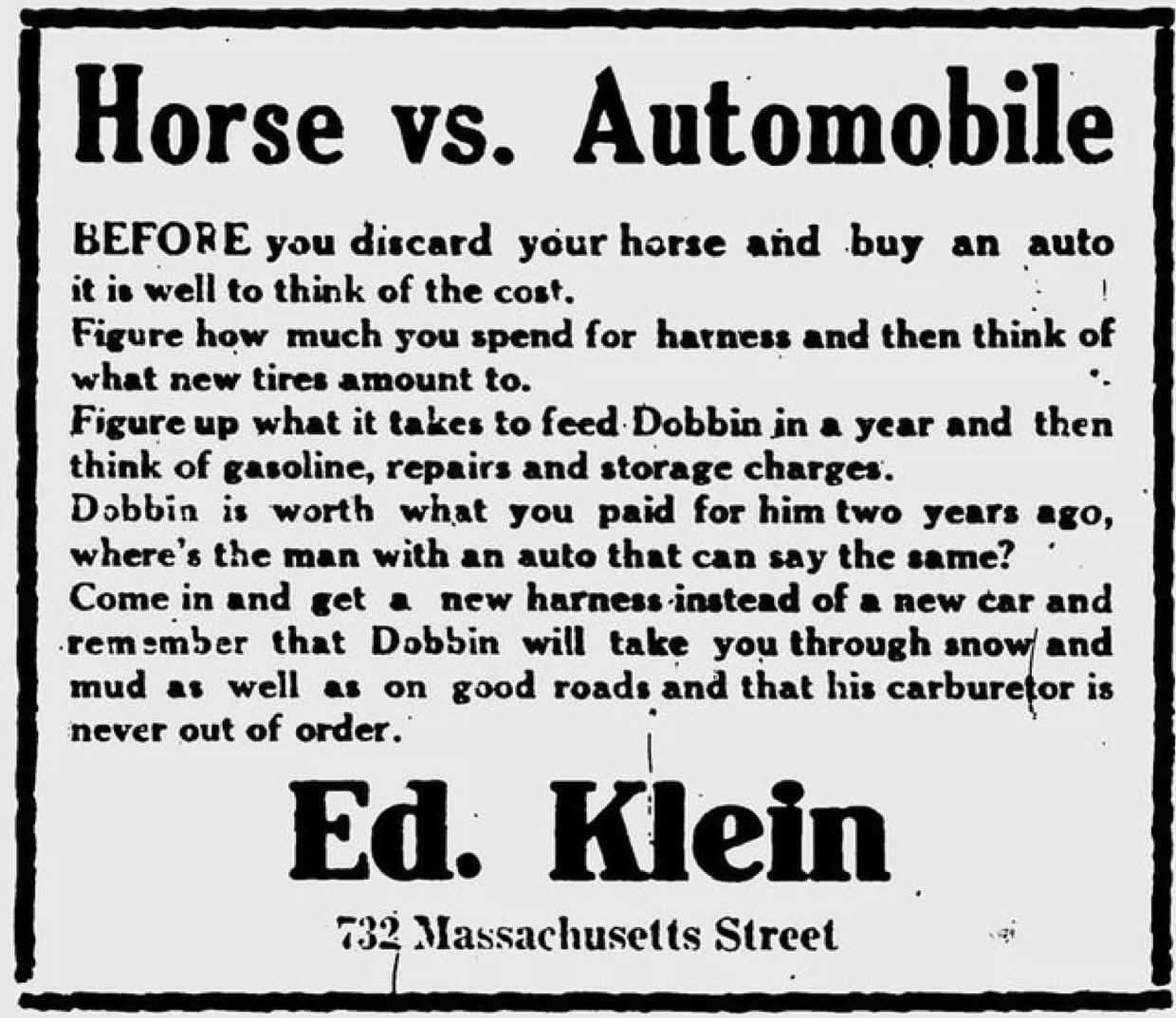 Lol, advice from advertisements at that time were saying get rid of your horse.