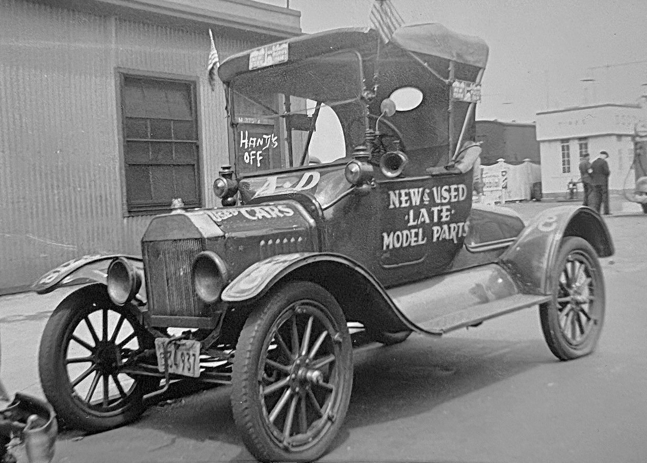 I think that fenderless touring in the fifth photo invented the first ‘burn out.’ If the next photo (6th) is actually a Ford dealership, I find it odd that an aftermarket wood body TT is there.