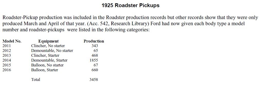 But then the 1925 Roadster Pickup production data you get that in March and April 1925 they produced 3,458 Roadster pickups.