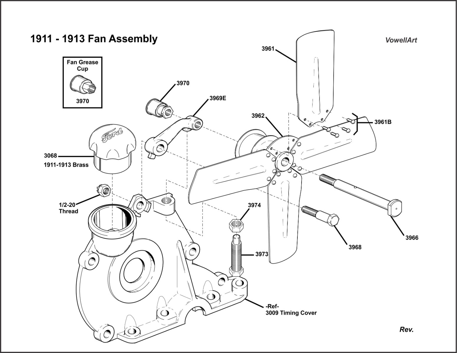 So, even though the fan arm is used clear to 1916, it was not used with the bolt adjustment under the arm past 1911? In 1912, I think is when the steep side bolt was being used, that pushes against the tab on the bottom of the arm (sort of like the later styles) to adjust the tension on the belt. Because as far as I've been able to figure out the oil fill started sometime about late 1911, and lasted only 6 weeks (start in mid October 1911, which is 1912 Model year). They rather quickly found this to be a really bad idea and I think recalled all cars with it and switched to the side adjustment. Because the early 1912 plate I've got pictures of (courtesy of Royce Peterson) shows that side adjustment bolt.