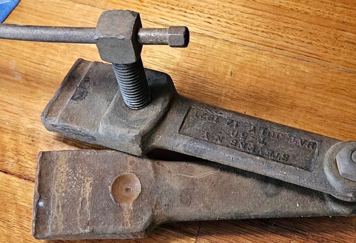 So looked up the tool in a Stevens Speed Up Catalog. Rather useful to have when one-man replacing rivets, makes a real good bucking bar.