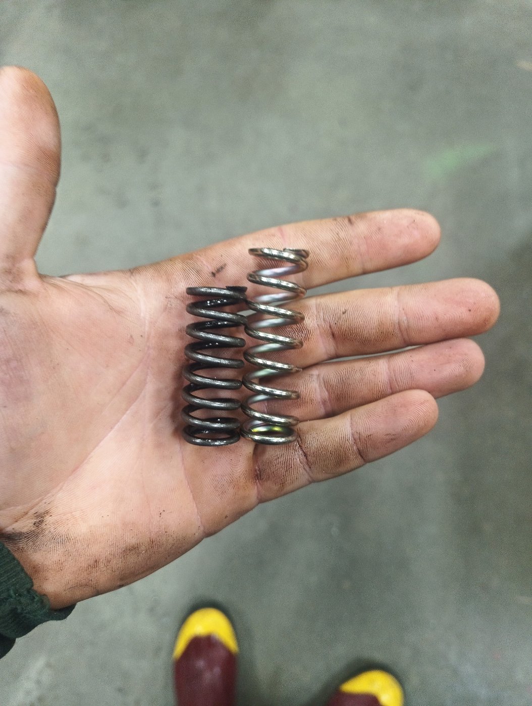 We decided to replace the springs as well. Big difference in uncompressed length between the new and old springs! Tim did have a problem with the magneto cutting in and out. It turned out to be a piece of an old band that had found its way to the Mag post.