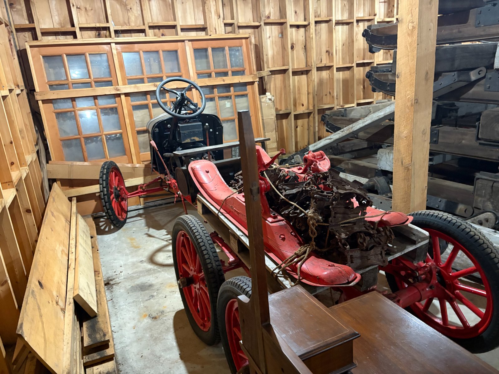 This shares space with our 1907 steam-powered Lombard Log Hauler which is fully operational and frequently under steam and out and about during our events. On February 7th we will have it out on skis for the first time in over a decade.