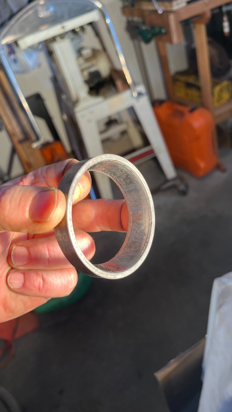 Just guessing here so I sorry for sounding like a fool but: it appeared to me that the inner roller bearing was very sloppy against the seal so I took it out. As I was cleaning things up to get a better look the bearing came apart in my hands. I've never seen that before with anything modern. Those bearing don't come in a Assembly Required kind of way do they? I think it's shot and I need a new one. As a result I thought I would drive out the Inner CUP as well since they mate. It looks perfect but I don't know.