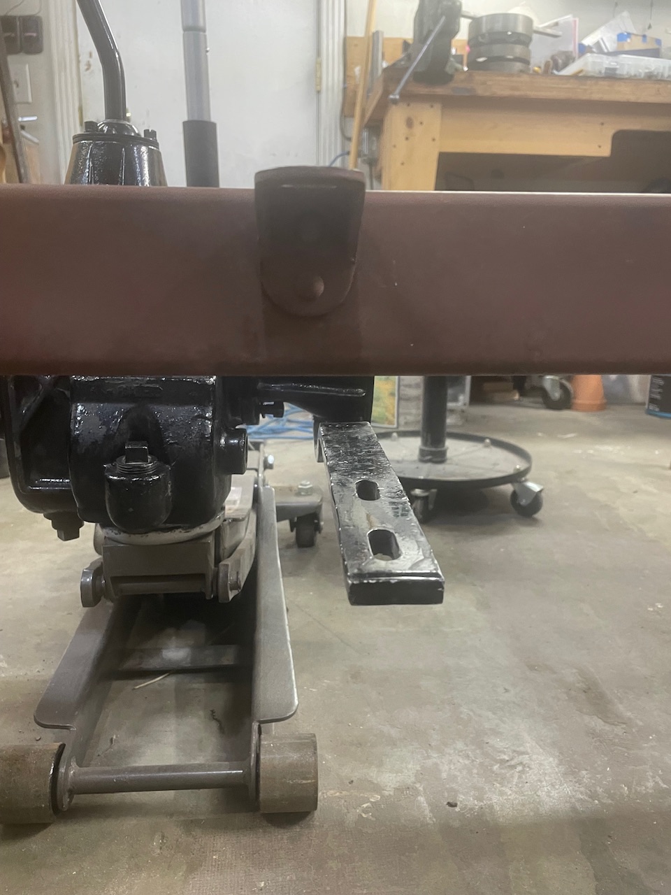 I have a Muncie transmission that I am installing. I have the special joints and rebuilt it with new bearings, bushings, and idler shaft. I also have a bracket that looks like the one in the Muncie manual but I don’t have the “U” bolts and springs. From what I can seen in the manual illustrations, one bolt attaches the bracket to the bottom of the back “bell” of the transmission. I can’t see if there is a pad between the bracket and the transmission. Also, my bracket appears to have been made and not original. The manual illustrations appear to show the original bracket fit flush to the bottom of the frame and the springs below the bracket allowed some flex. But, it’s not a great image and it’s hard to tell. My bracket is not flush to the bottom of the frame. I am also missing the u-bolts and springs.