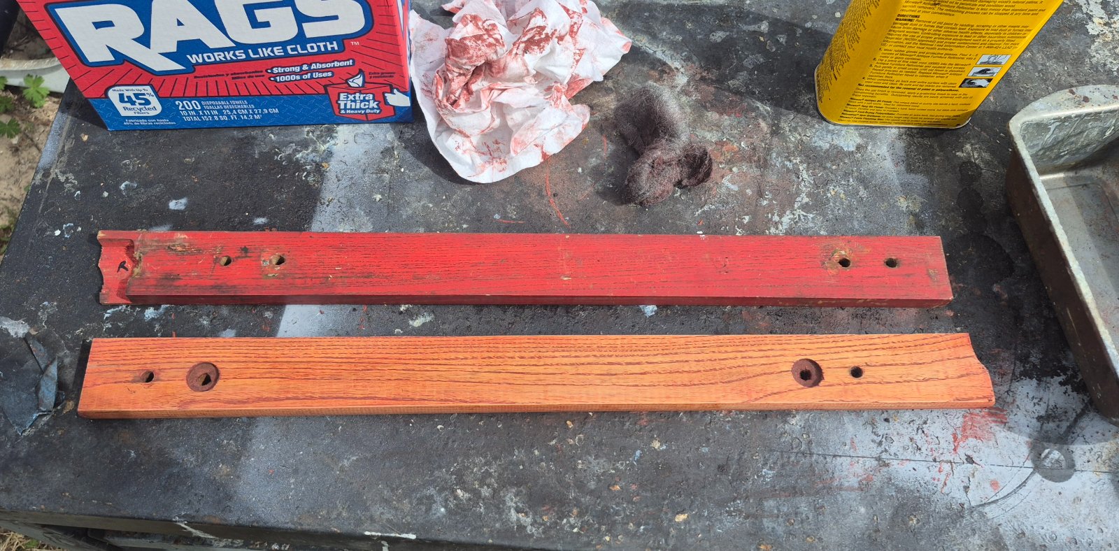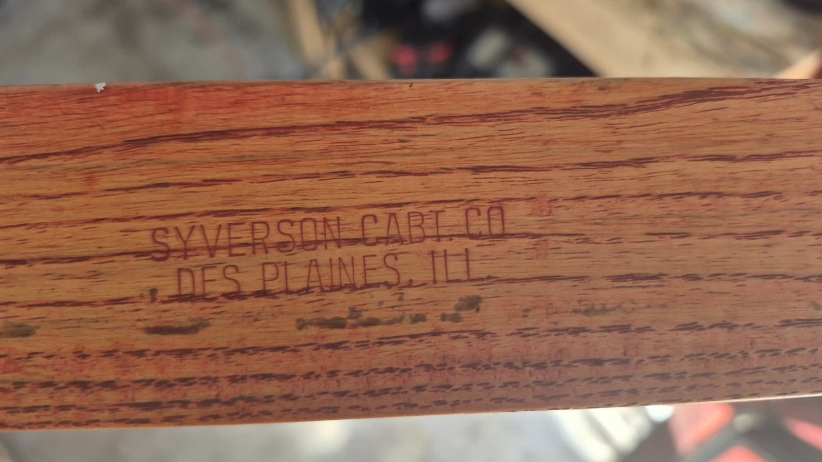 Cleaning up the wood on her, while the firewall is original, the hood boards are replacements built by Syverson Cabinet, from their Des Plaines location they vacated mid 60's.