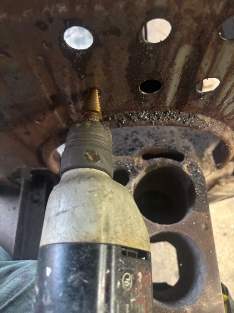 I’m about ready to drop my motor in a speedster I’m building. I’ve got the front and rear axles done, next comes the body. It’s an Overland body but I might want to go for a spin before I take it off for bodywork and paint so I had to drill holes for a coil box. Never used one of those step bits before.