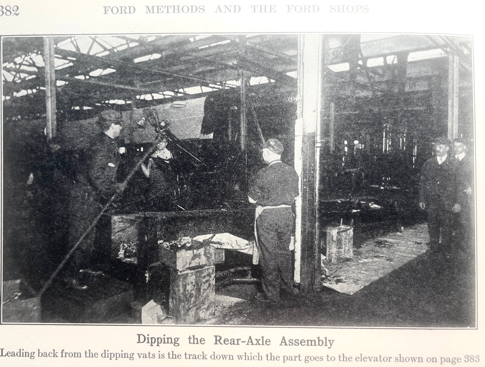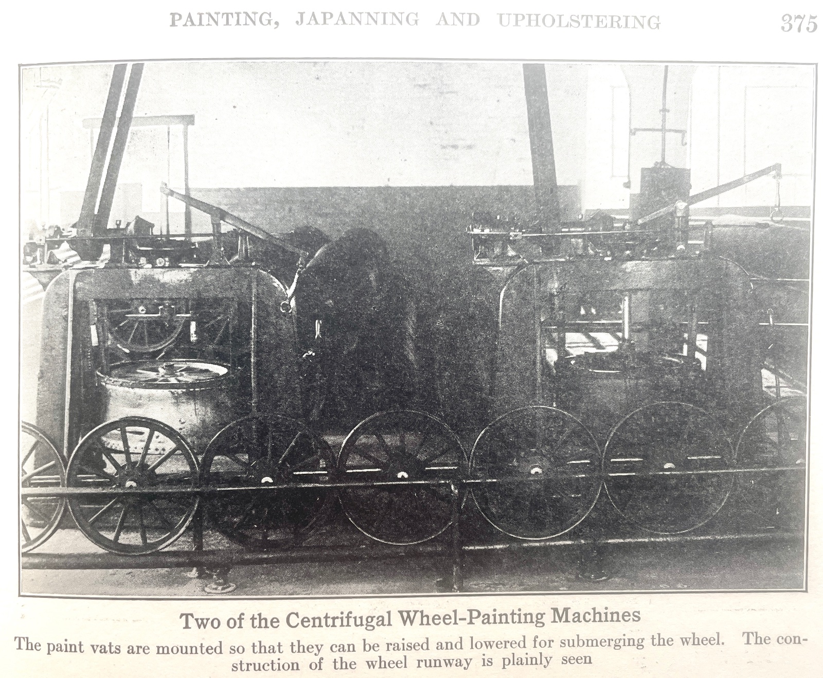 Photos from 1914 of the painting process for wheels and rear axles, Ford Methods and The Ford Shops.