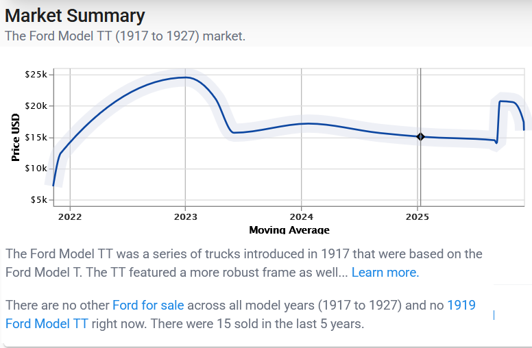 Are you talking about the one listed by a Houston club member that sold in December? It was a real Howe fire truck, built on a TT chassis and listed for sale at $17,000.TXGOAT2 wrote: ↑Sun Mar 08, 2026 11:38 amMany people don't have room for a truck. License and insurance may be an issue for some. TT tires are expensive, and a TT is even less suited for modern road conditions in most localities than is a T. I think that high insurance rates have reduced the number of local parades, too. A nice late TT fire truck sold last December in Texas. It's Springtime now, so I'd bump the listing and give the length and height and weight measurements. A good side view pic might be helpful. Not being a "real" TT ought to increase the market for it.
