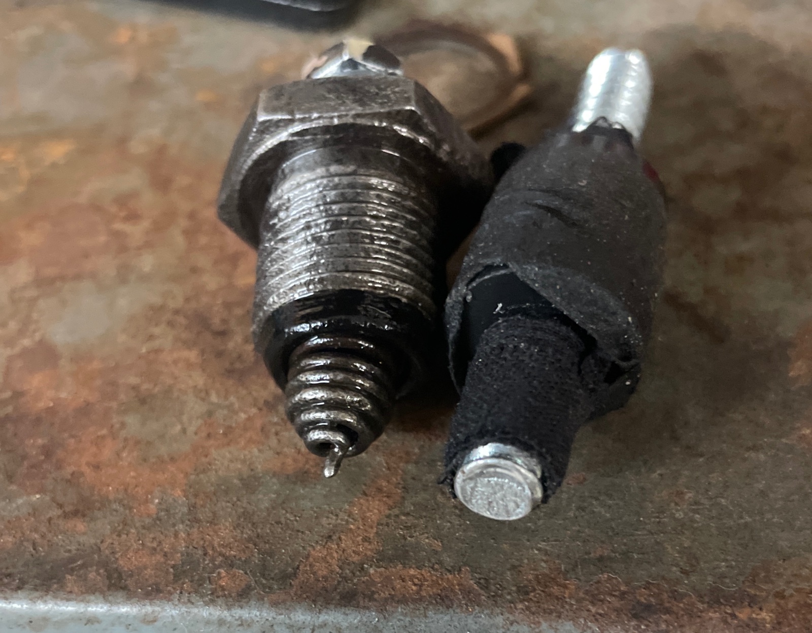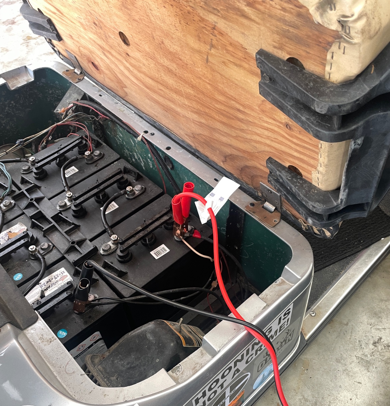 Then the handy golf cart with 36v of good amps to supply current , made an insulated bolt for the (+) in lieu of the tiny spring tip mag contact as thought best to have good electrical path.