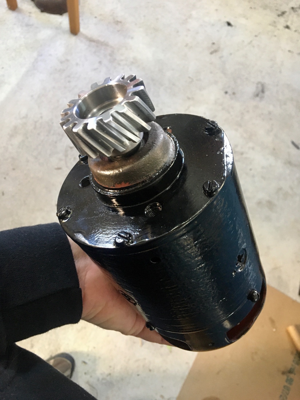 after some bench tests, got a new gear, a voltage regulator and some paint and bolted on the generator.