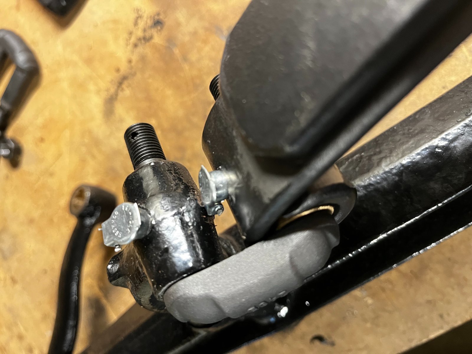 Thanks for the picture. Now i understand. I thought you couldn't get the shackle in. Get the oiler in deeper and put weight on the suspension and It should clear.