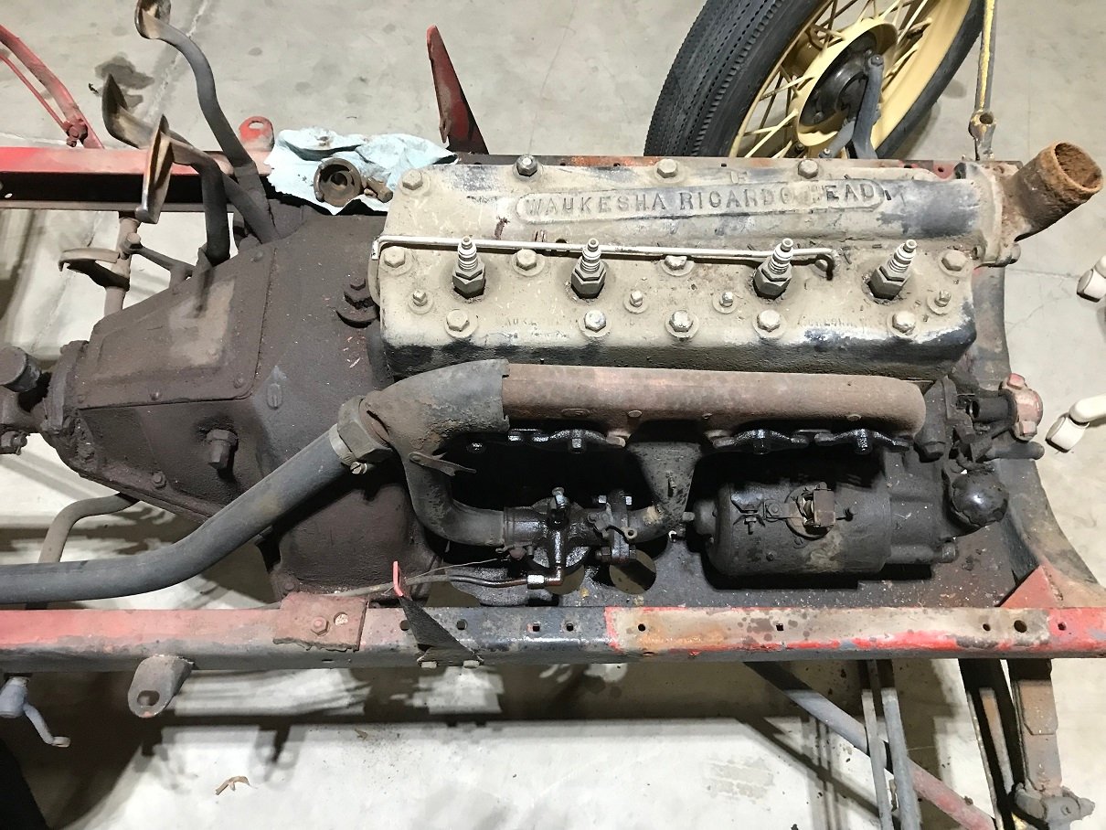 I bought this and numerous good parts from an estate. Don't know if it was intentional but beat up fenders, spot welded to the fender arms, mixed up nuts & bolts, rusted parts were used. Block is a 1926. Its next in line for a look see what I got. Rear tapered leaf spring will be replaced.