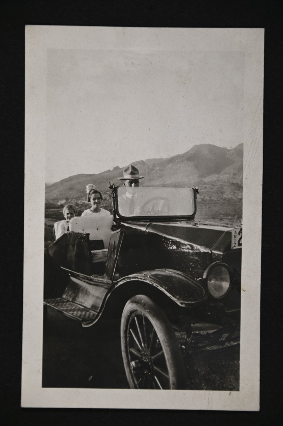 I've been sorting through and copying some old family photographs and would love to have someone who knows more about Model Ts tell me about these. My grandparents moved to Arizona from South Dakota approximately 1917 by Model T. Family lore says it was quite a trip as the car couldn't haul all the people and everything they'd crammed on board up hills--some hills required three trips and they thought they'd never get over Raton Pass in New Mexico. I've been searching the internet, looking at old Model Ts, and I THINK it's a 1916 or 1917 model, but the hood looks different from any other pictures. I wonder if my grandfather made a custom hood? He was a mining engineer and did a lot of tinkering with later cars, including adding a bunch of gears to one that my father remembers. I"m not sure if the first photo (0757) is the same car before modifications--it's with a bunch of photos taken when he first arrived in Arizona, before going back to South Dakota for the family. I'm pretty sure the rest are of the same car. He apparently converted the trunk to a rumble seat. The last photo (0919) shows the car on a camping tour of Arizona, 1920. The top has either been replaced or covered with a lighter color (better for hot Arizona) including an extension to shade the passenger in the rumble seat, and boards on both sides to create storage space for camping gear and suitcases along the running boards.