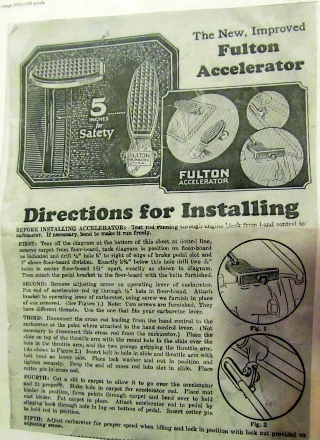 Attach is a copy of instructions of a foot throttle using scrap material.