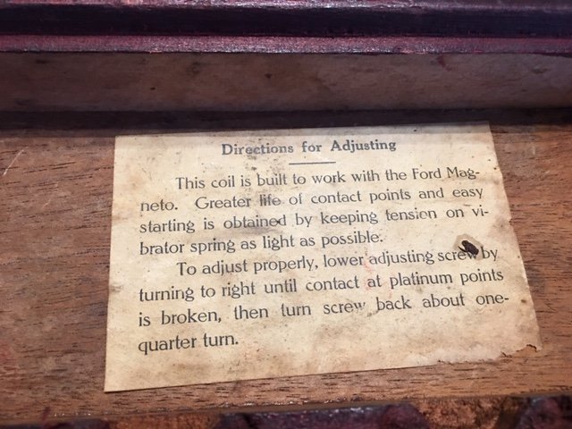 Unfortunately, because of their designs, the only sure way to calibrate the early coils is with a hand cranked coil tester. The so-called "buzz box" style of "tester" will not work for them. You can use it to find out if it works and to set the amp draw but that's it; you won't be able to check for proper operation on the magneto or to check for the double sparking that is the bane of these early units. Coils with new points are highly prone to this. The armatures are essentially sheet metal which is usually loaded with stresses that must be worked out before they can perform their best. The best way to do this is to drive the car to break them in, realizing as you do that an occasional, irregular "hiccup" from the engine is normal and will disappear in time. Because of this, I set up newly rebuilt or reproduced coils on the tester and ignore occasional, irregular double sparking. Steady or constant double sparking, however, is not acceptable and the coil will need its points re-set or in rare instances replaced before the coils are released to the customer.
