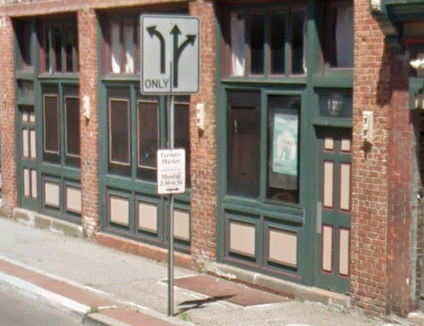 The sign in front of the building indicates that one store front is a Farmers Market opened on Monday 2:30 to 4:30. New Jersey trucking farming is still active. Also the undulations in the building when viewed from the front are due from the rotating Google Camera as it moves past the front of the building, the drive-by street pictures are a composite . The second photo shows a flat front