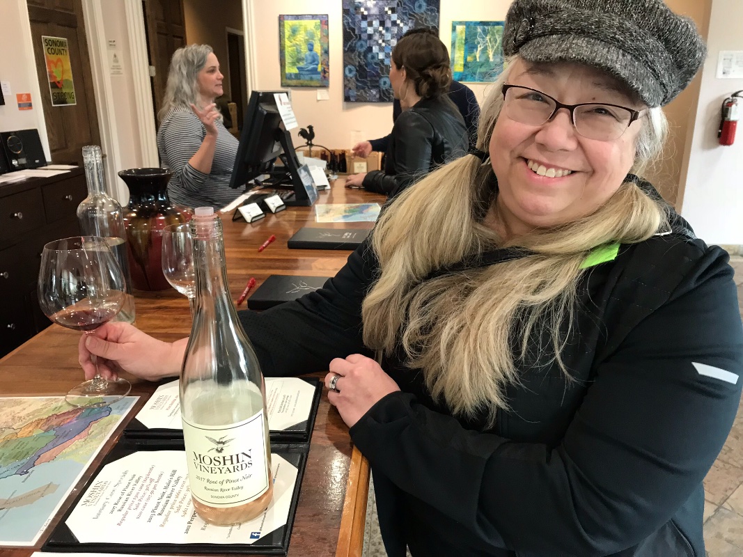 It was ok until I hit the brakes and discovered that my Rocky Mountains weren’t adjusted properly and I only had a left whl brake. I had to employ evasive maneuvers a couple of times. We stopped in Healdsburg and had a great brunch with about 25 folks and then decided to go a different route home to Santa Rosa and visit some of my company’s clients and do some wine tasting. I love being in the wine biz!